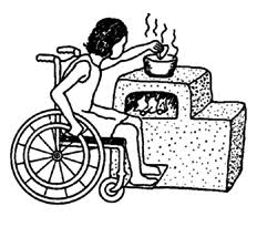 Then I googled "wheelchair cooking". First thing that comes up is a link to a blog where a paraplegic shows safety tips for people cooking in wheelchairs. (This reminds me of the occupational therapist who, when I asked what I could learn to cook, suggested I first buy a welder's apron and mask. Wisecracker.)